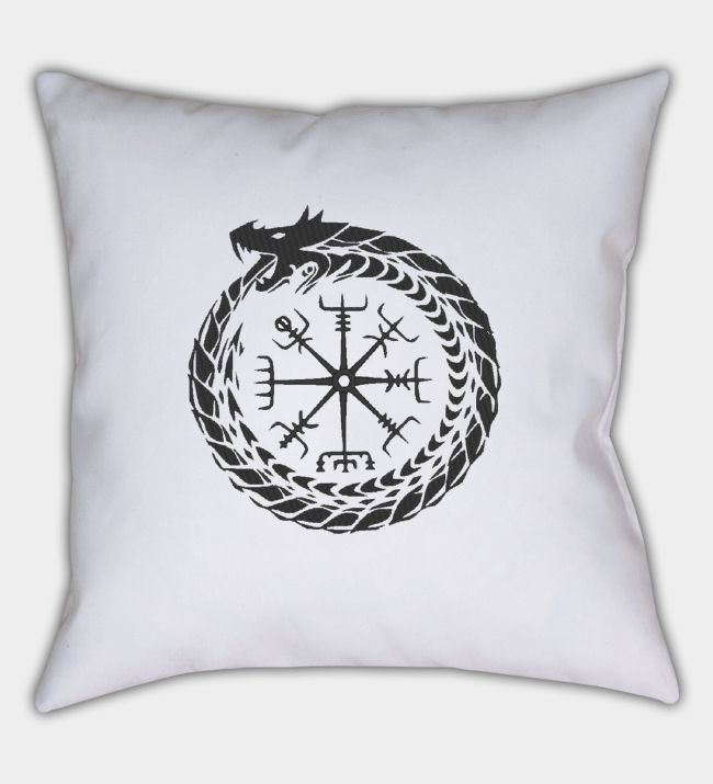 Housse de coussin décoratif brodée du Serpent de Midgard